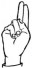 На ћирилици написано БЛАЖА ВУКШЕВИЋ састоји се из 13 слова [?]. Исписано ћириличном једноручном азбуком за глувонеме: